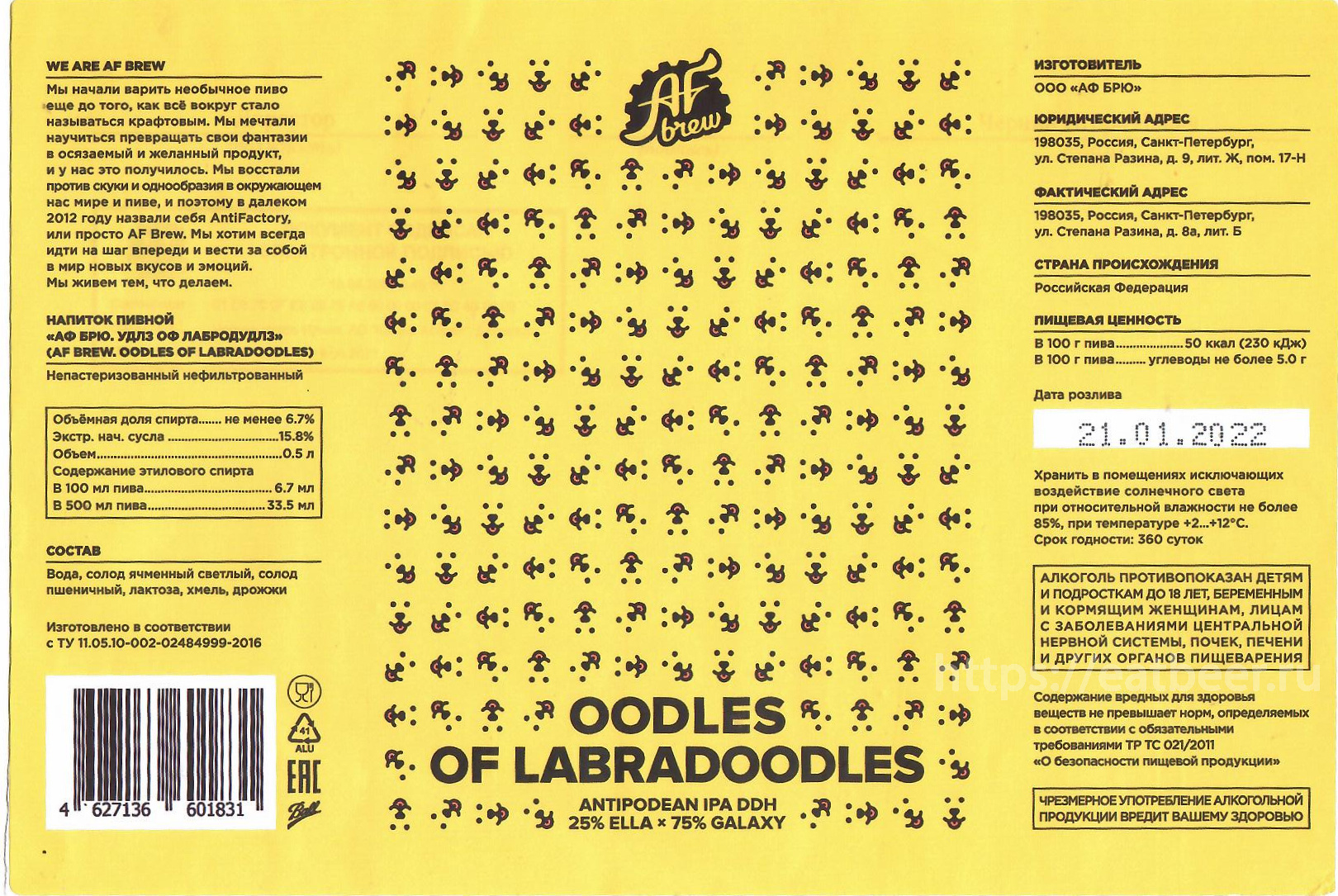 What it's like to be a Labrador and a Poodle at the same time? It is to be a Labradoodle, a funny and friendly crossbreed dog from Australia. And when there are too many Labradoodles it's called Oodles of Labradoodles. Same as our new IPA crossbred from two juiciest and oiliest Australian hops - Galaxy and Ella.