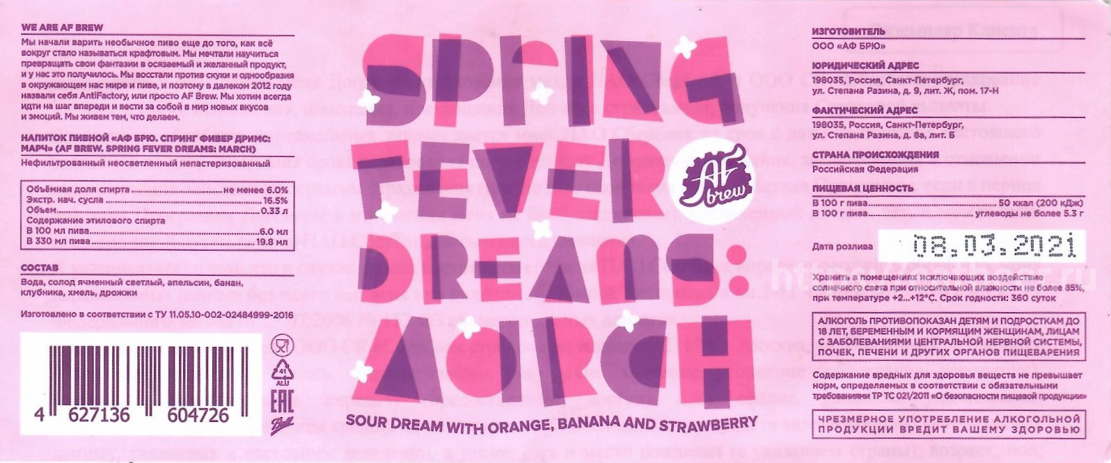 Tremor cordis, lovesick, fever dreams? You’re still spring-sick. In March your prescription is this new pinky sour ale with orange, banana and strawberry.