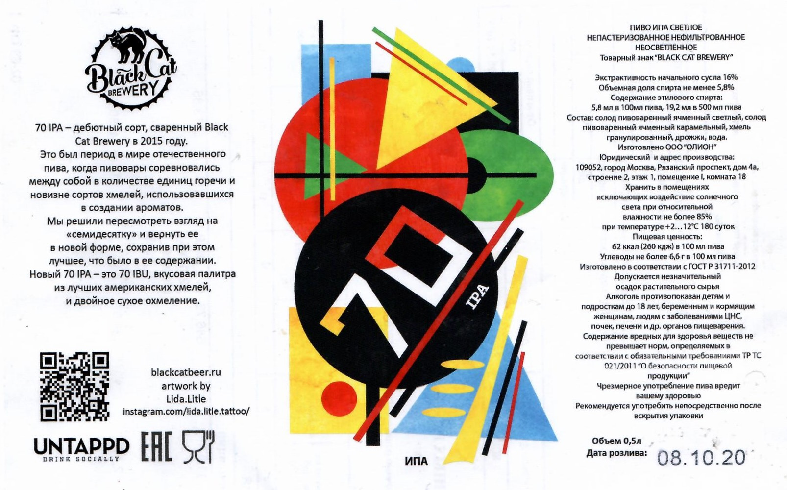 70 IPA - дебютный сорт, свереный Black Cat Brewery в 2015 году.